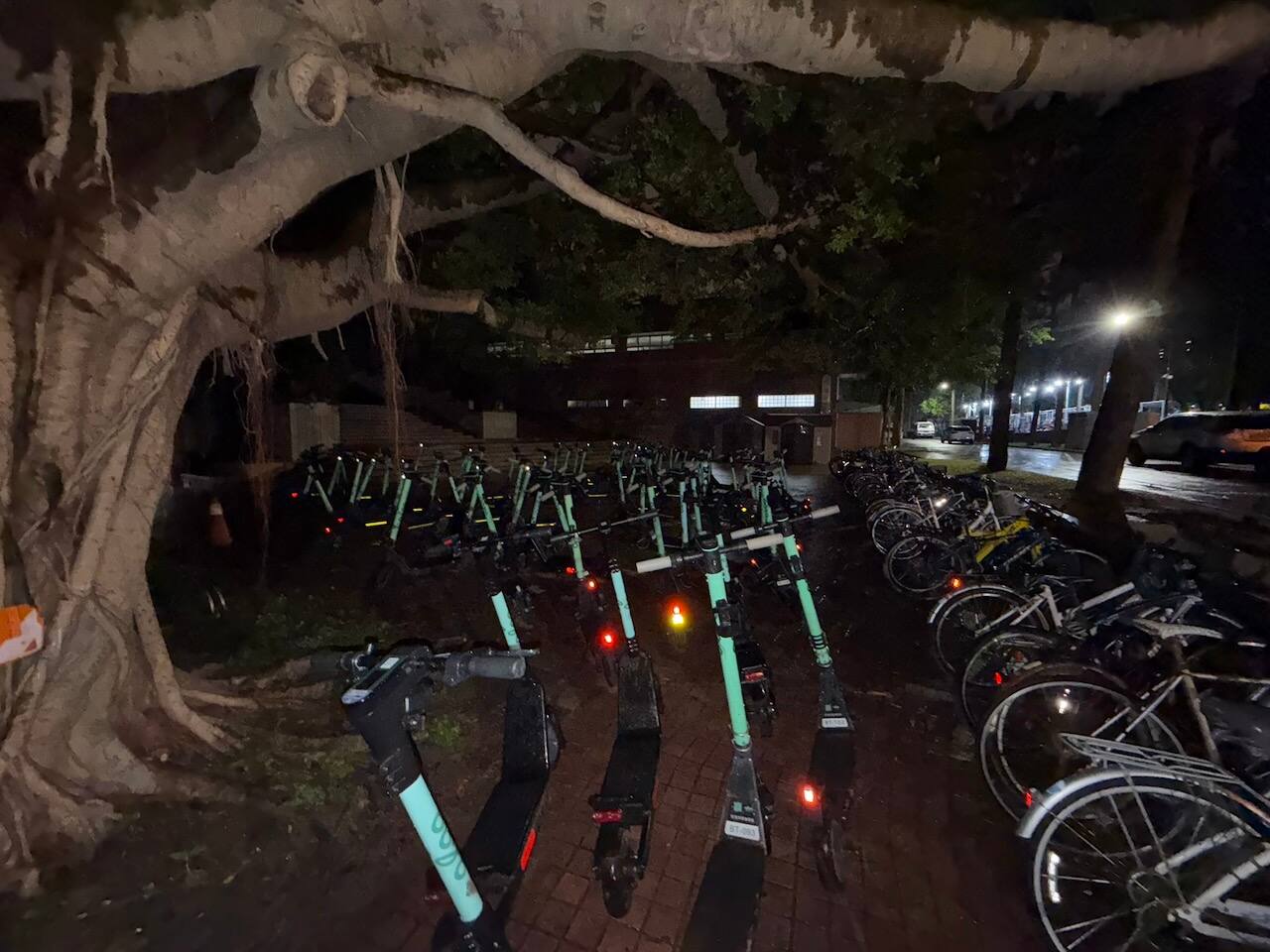 我們學校除了有共享單車之外1,也有共享「電動滑板車」的存在,也有很多人會買自己的電動滑板車或電動腳踏車作為代步工具,因為學校真的太大了。